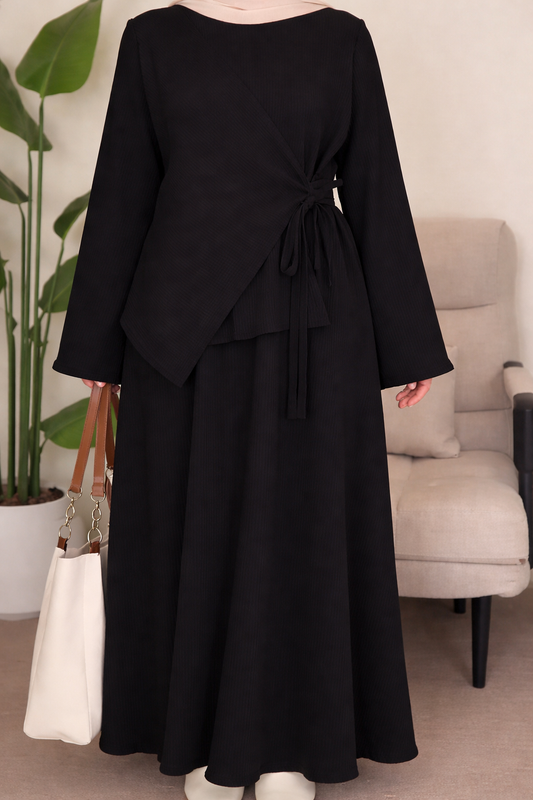 أونسومبل نسائي محتشم بقصة فضفاضة وحزام أنيق