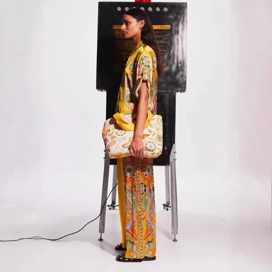 طقم ساتان فضفاض بتصميم لوحة فنية