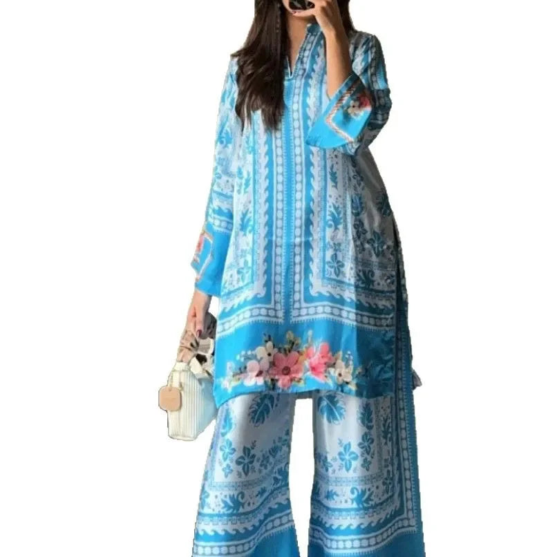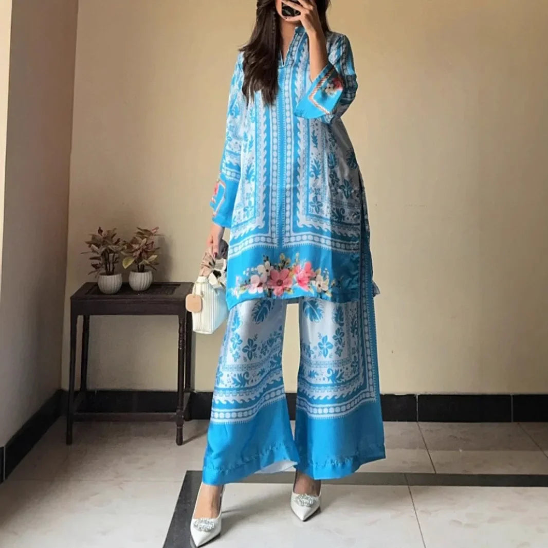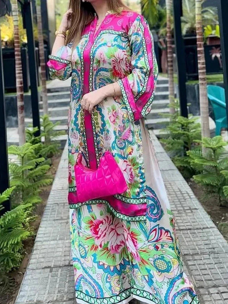 طقم تونيك مغربي أنيق بنقوش الزهور الزاهية