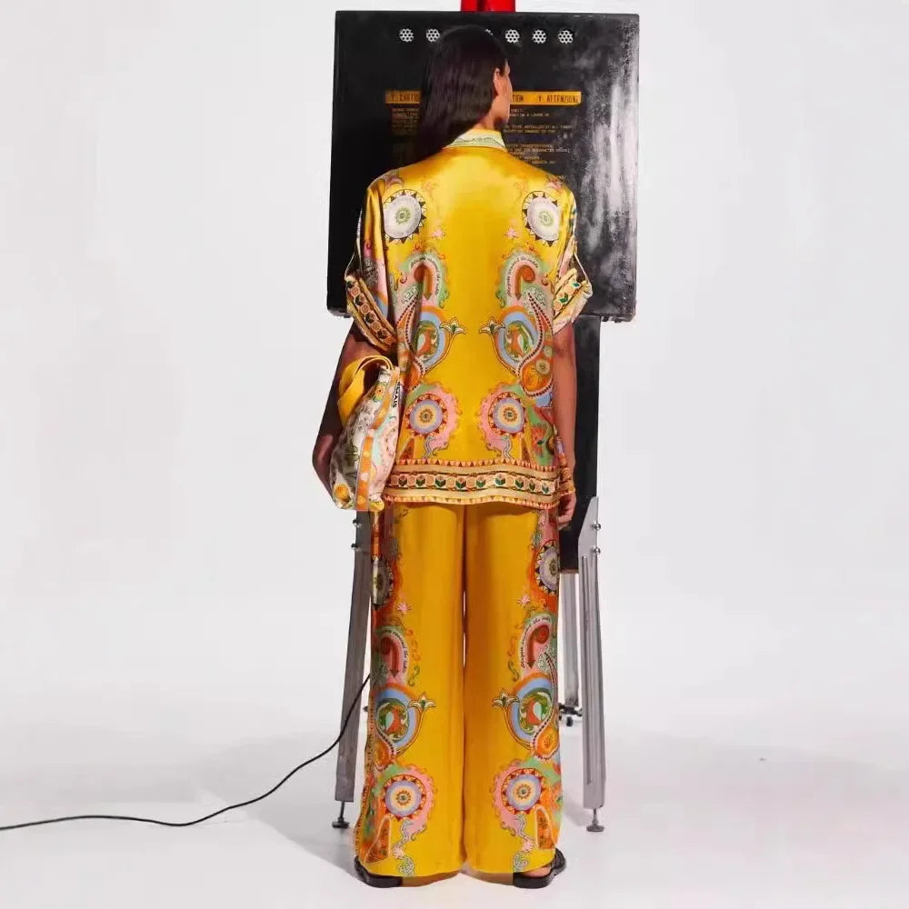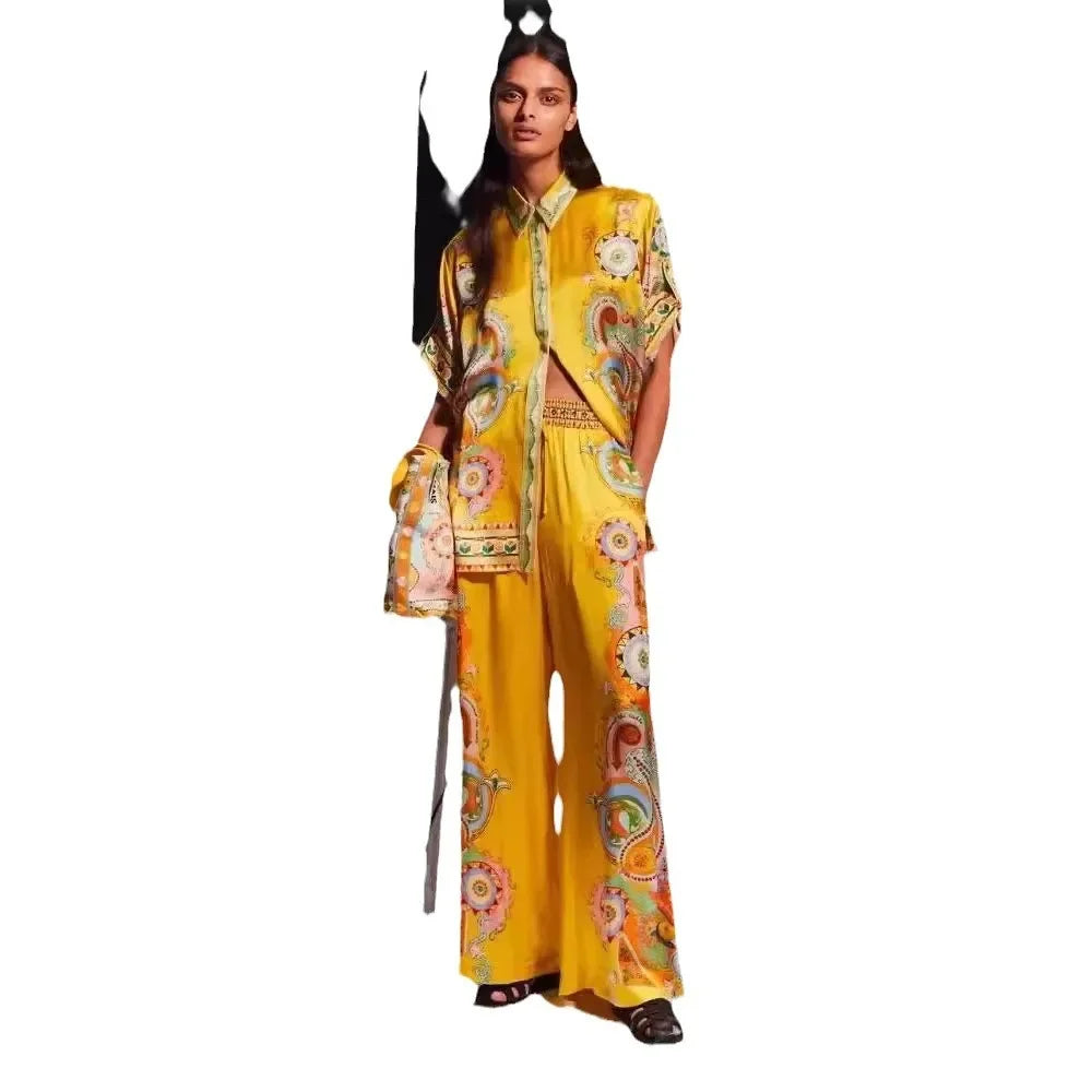 انطلقي إلى عالمٍ من الإبداع الفني النابض بالحياة مع بنطال أليمايس بينبول الحريري. مصنوع من الحرير الخالص بطبعة آسرة لا غنى عنها، يوفر هذا البنطال لمسةً من الفخامة وقصةً مريحةً وواسعة.