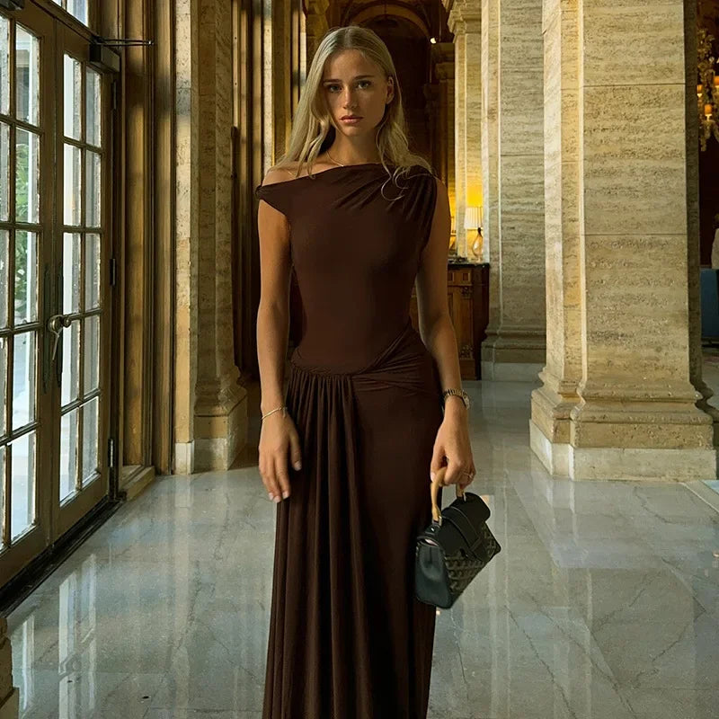 يتميز بتصميم أنيق على كتف واحد وظل غير متماثل.