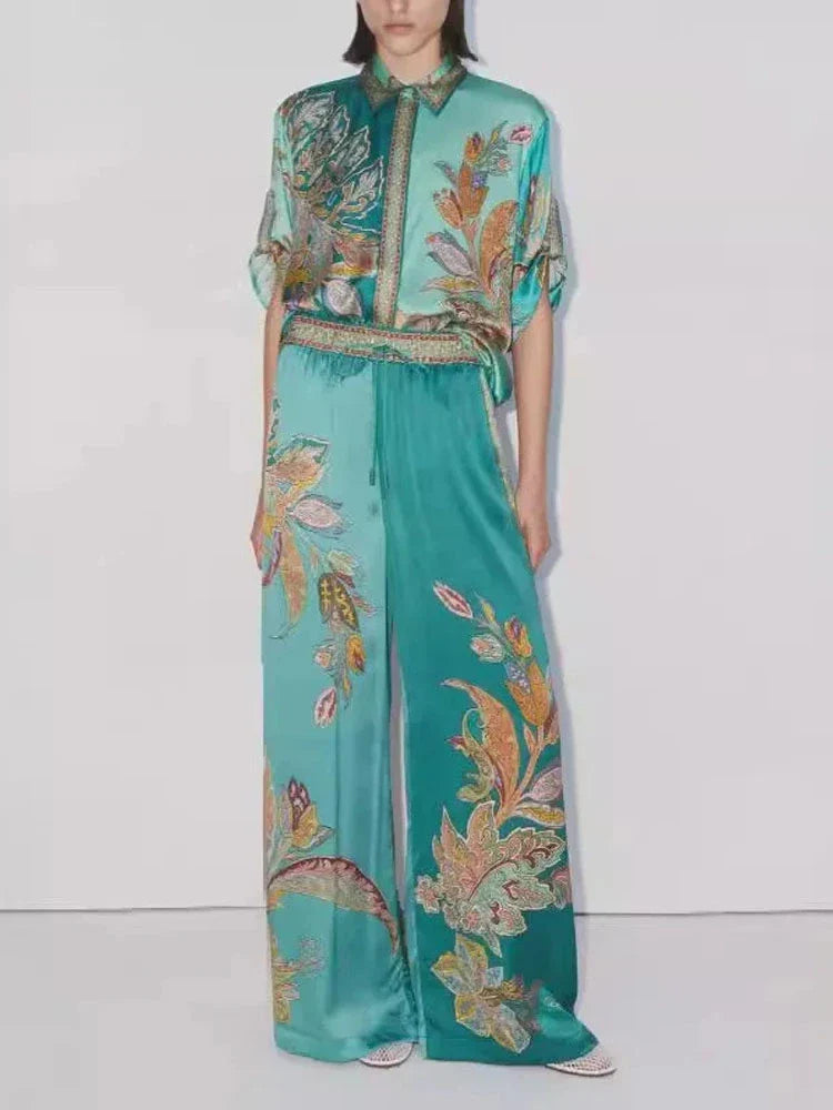 طقم قميص ريترو وبنطال واسع الساق